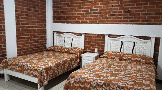 Habitacion con 2 camas matrimoniales baño hasta para 4 personas con costo extra a 250 mts del area de albercas estacionamiento contiguo