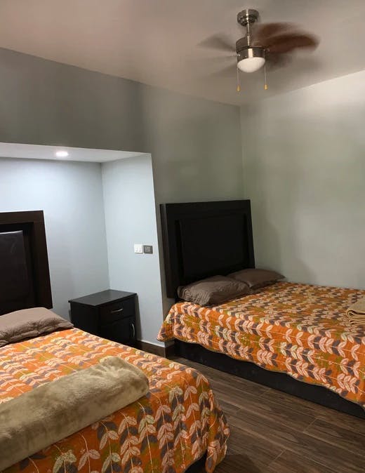 2 habitaciones cada habitación cuenta con su propio baño, 2 camas matrimoniales, sala, cocina está a